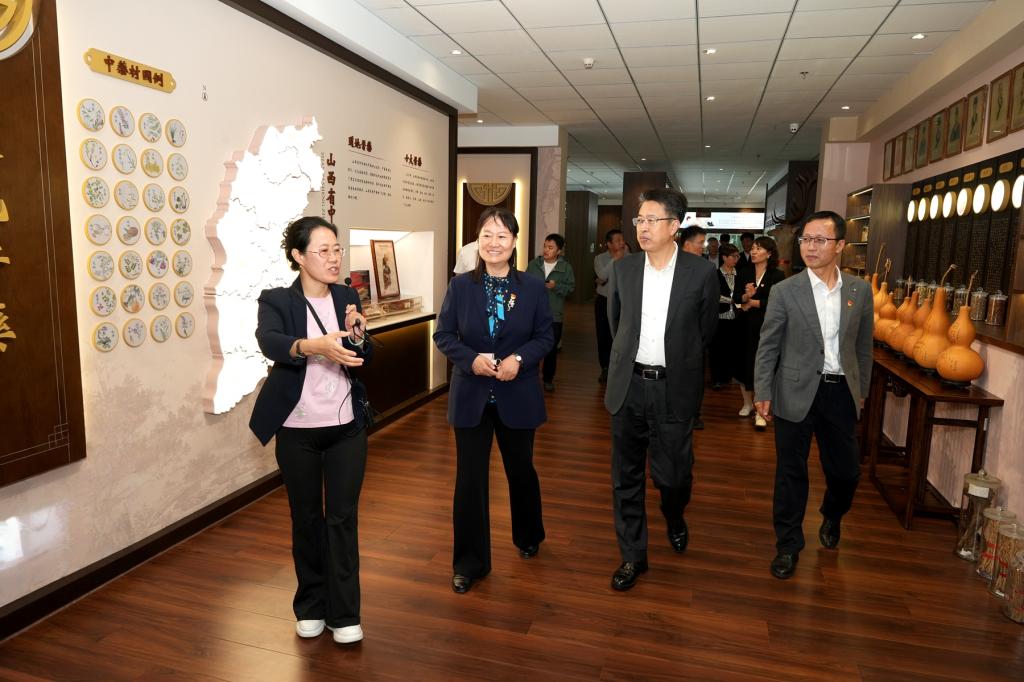 李华荣一行实地调研了学院中药材产教融合实训基地、中药调剂技艺传承基地、中药标本馆、百草大药房、药·茶技能技艺传承与创新实训基地、大学生素质教育中心等教学实训场所,详细了解了学院在产教融合、技能传承、党建育人等方面的建设成效。