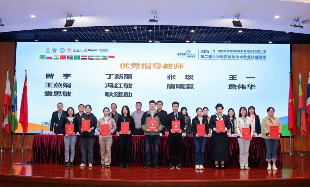 11月6日至9日,2025一带一路暨金砖国家技能发展与技术创新大赛第二届生物制品检验技术职业技能赛项在浙江经贸职业技术学院圆满落幕。我院2024级生物制药技术2班学生任瑾、曾宇星斩获二等奖,老师张琰、王一荣获优秀指导教师。