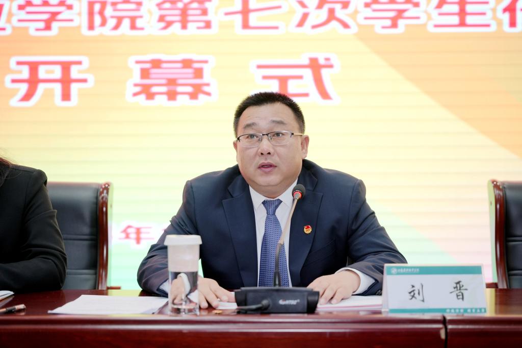 刘晋代表共青团山西省委、省学联向大会的召开表示祝贺。他肯定了我院近年来在学生“第三课堂”实践、就业创业服务体系建设、校园文化品牌打造等领域取得的成绩,并对我院团学工作提出了三点建议:一是聚焦政治引领,用习近平新时代中国特色社会主义思想筑牢青年学生精神支柱;二是坚持青年为本,用心用情护航青年学生成长成才;三是加强自身建设,锻造全面过硬的新时代团学组织。
