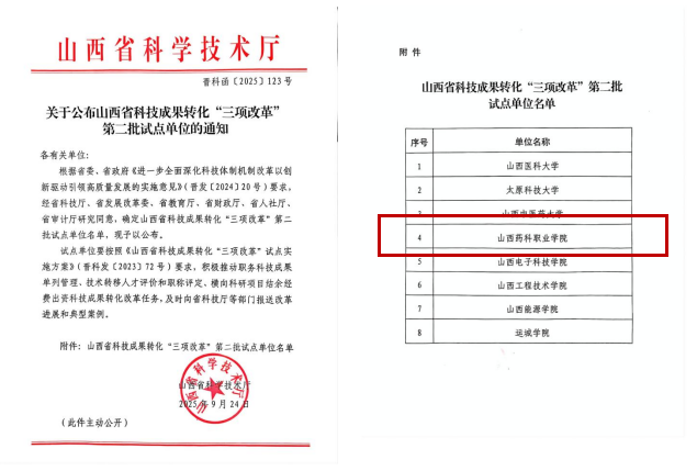 近日,山西省科技厅正式发布科技成果转化“三项改革”第二批试点单位名单。我院凭借在科研创新领域的持续深耕、成果转化机制改革的积极推进,以及产学研深度融合方面的有力探索,成功跻身省级试点单位之列。